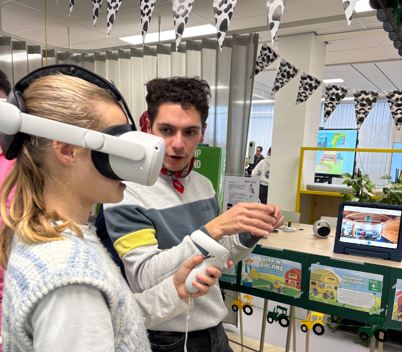 Tijdens de Marnix Maker Faire presenteerden tweedejaars hun zelf ontworpen digitale tools rond duurzame ontwikkeling. Na twee LEV-weken vol creativiteit, onderzoek en digitale vaardigheden kwamen zij met verrassende prototypes, ontwikkeld in onder meer CoSpaces (VR), Thinglink, Hopspots, de podcaststudio en AI-tools zoals CanvaAI.