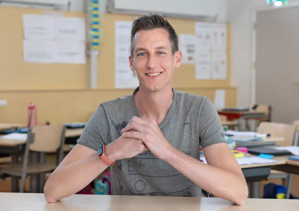 Voor Marthijs waren er verschillende redenen om voor de Master Onderwijs & Technologie te kiezen: niet zomaar met leuke appjes komen aanzetten bij collega’s, maar ook echt een stuk verdieping inbrengen. Weten wat er allemaal voorhanden is op digitaal gebied. En meteen de theorie erachter leren kennen. Marthijs: ‘De Wegwijzer is van oudsher een enigszins traditionele school. De laatste jaren doen we wel steeds meer op digitaal gebied. Als ICT-coördinator ben ik verantwoordelijk voor de ICT-leerlijn binnen onze school. Sommige collega’s zijn nog wat huiverig om aan de slag te gaan met nieuwe technologieën. Stap voor stap neem ik nu het team mee in de nieuwe kennis en vaardigheden die ik opdoe tijdens mijn master. Elke vrijdagochtend gaan we een kwartiertje zitten met het hele team voor een inspiratiesessie. Dan laat ik bijvoorbeeld een nieuwe tool zien en presenteer ik de werking daarvan.’